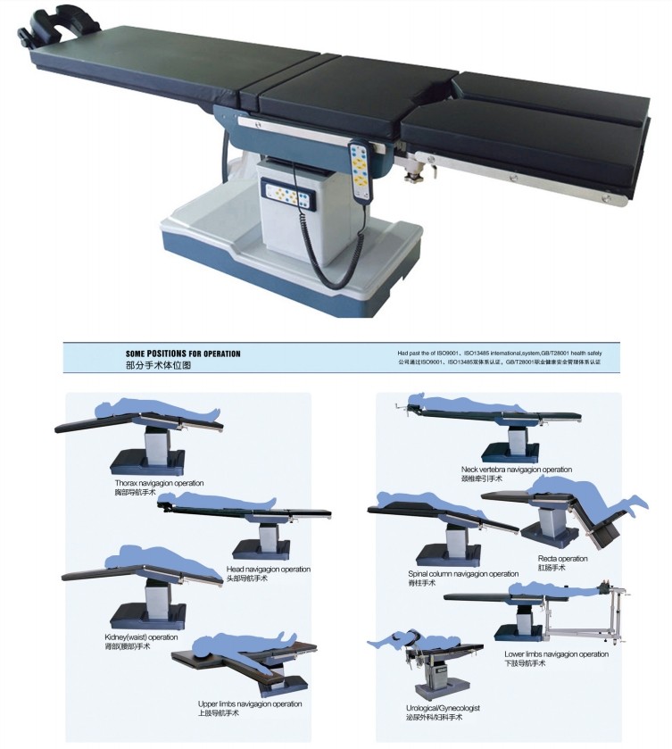 1. 采用精密的醫用專用微電機,電動齒輪嚙合機械結構,替代了傳統的液壓傳動技術,無需定期添加液壓油,無液壓傳動易漏油之憂。產品剛性優越,運行速度均勻,平穩,體位擺放精準,性能可靠,經久耐用。